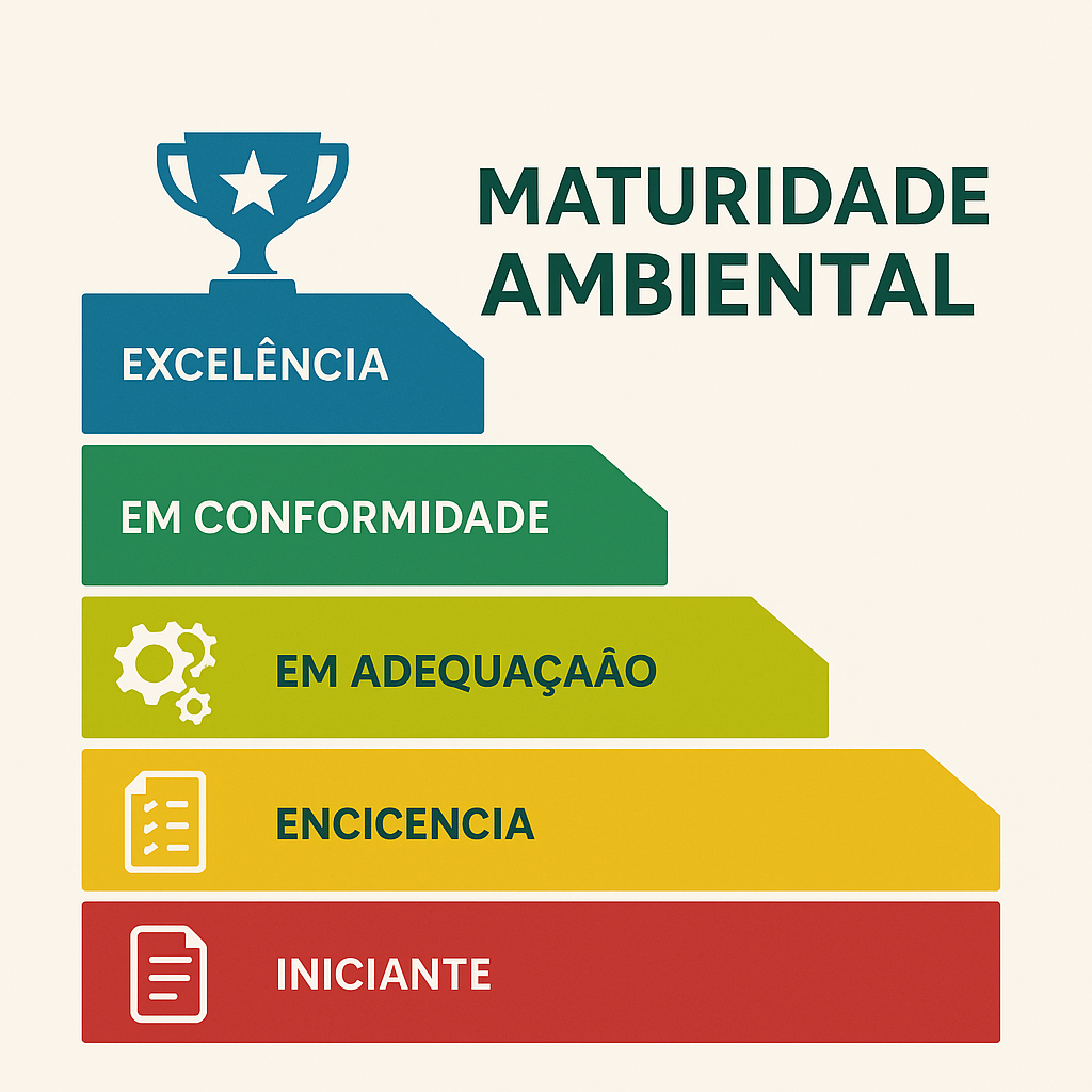 Maturidade ambiental é a capacidade da empresa de integrar práticas ambientais ao seu dia a dia, de forma estratégica, contínua e mensurável.